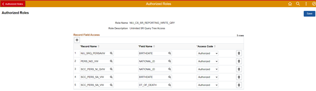 Once the roles/fields are added, all authorized role data will appear on the Authorized Roles page.